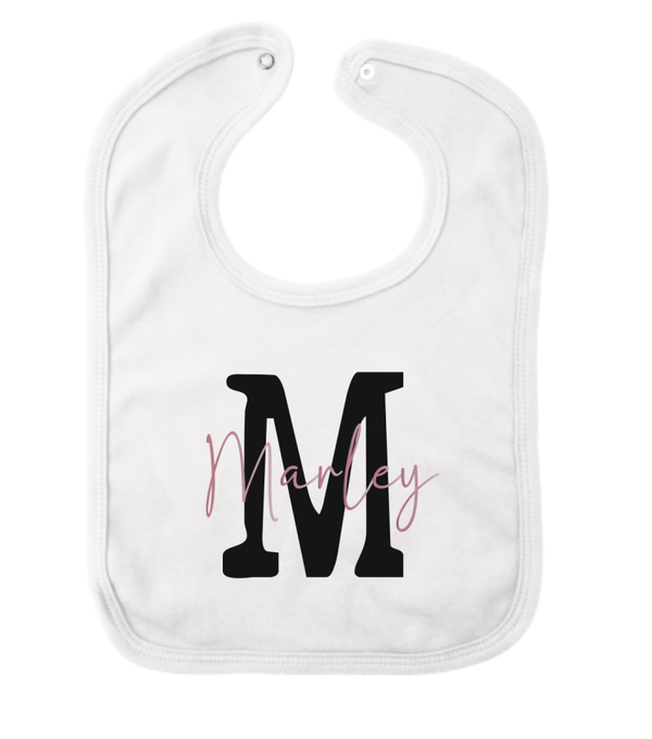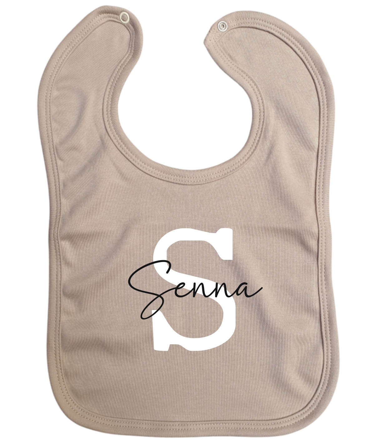 Een leuk slabbetje met naam van je kindje en de eerste letter van de naam.