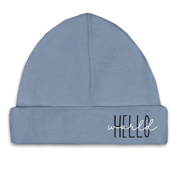 Baby newborn mutsje met tekst; Hello world.