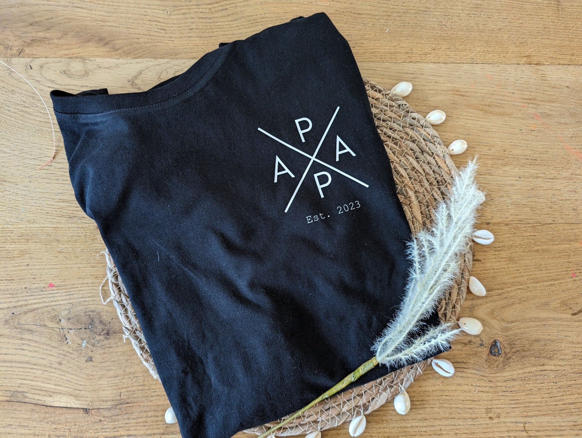 Op zoek naar een origineel en persoonlijk Vaderdag cadeau? Met deze stijlvolle matching T-shirt set voor vader en kind geef je een blijvende herinnering aan het moment dat jouw man papa werd! De set bestaat uit een heren T-shirt met de opdruk "Papa est. [jaartal]" en een baby- of kindershirt met "Mini est. [jaartal]" – perfect om samen in stijl de dag te vieren.