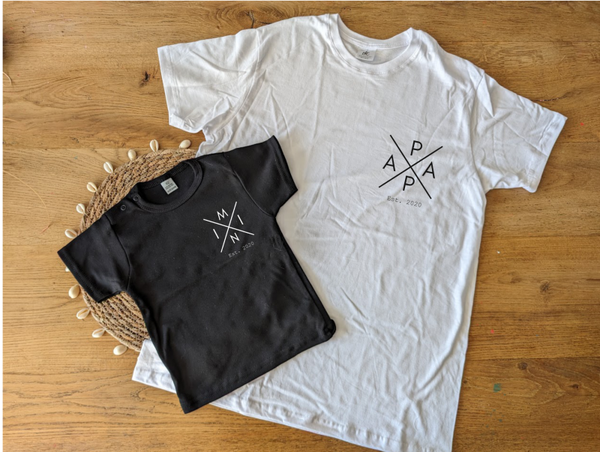 Personalisatie: "Papa est. [jaartal]" & "Mini est. [jaartal]"