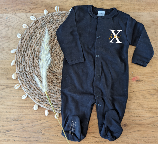 Het boxpakje is gepersonaliseerd met naam. Standaard wordt er op de onderkant van het voetje de geboortedatum bedrukt. Zo is dit in één keer een uniek boxpakje en voor later een mooie herinnering.
