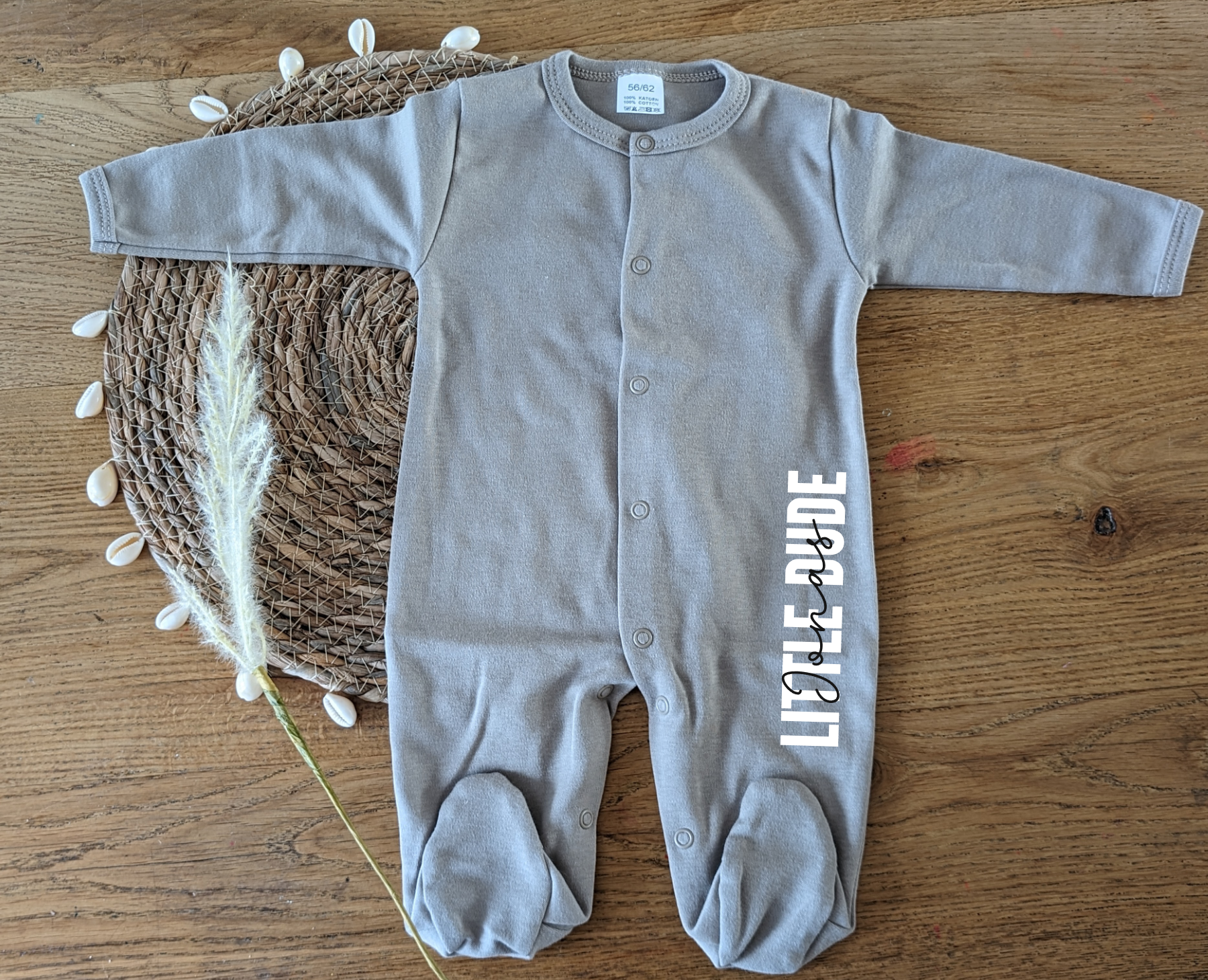 Het boxpakje is gepersonaliseerd met naam. Standaard wordt er op de onderkant van het voetje de geboortedatum bedrukt. Zo is dit in één keer een uniek boxpakje en voor later een mooie herinnering.