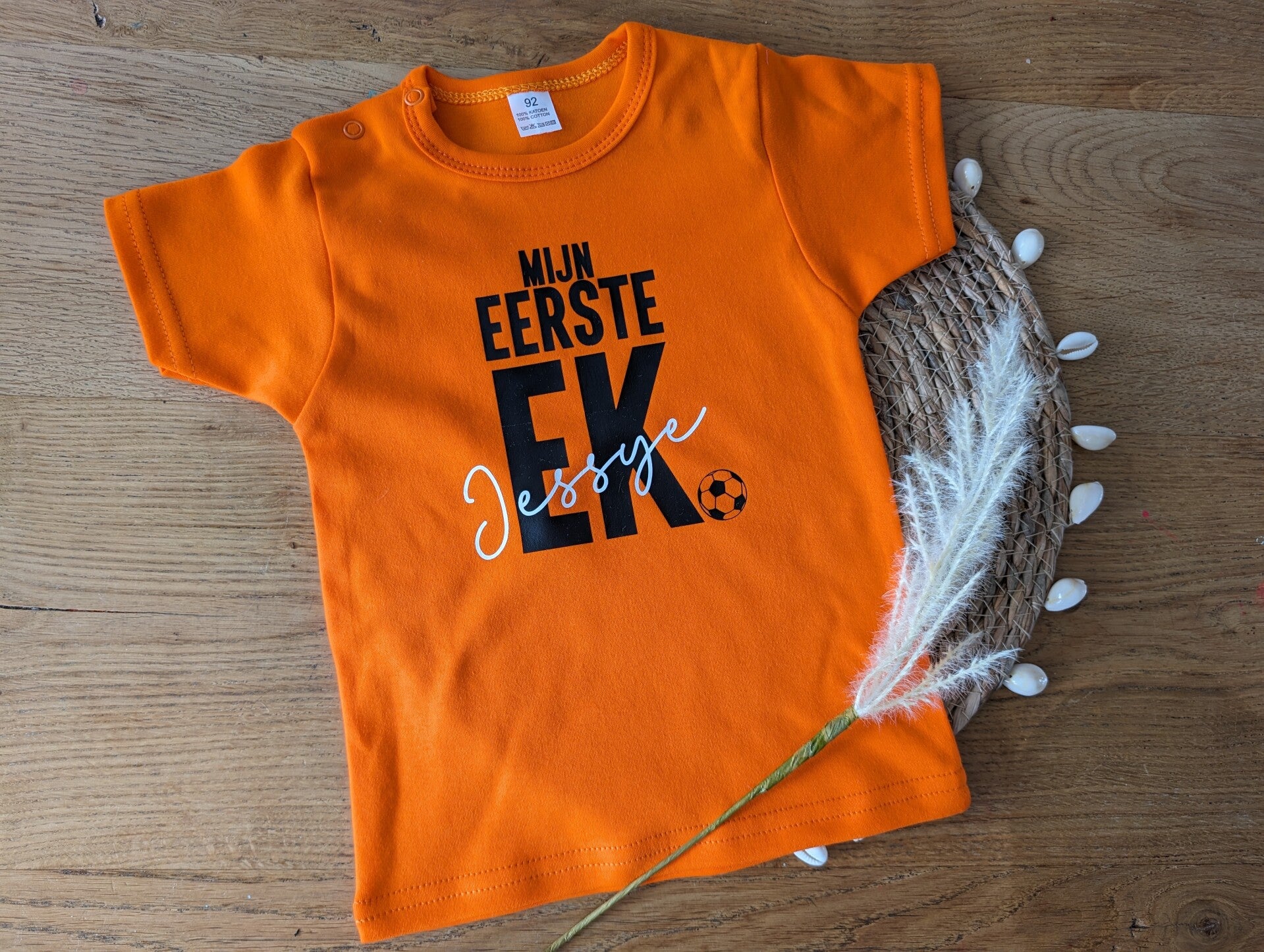 Hoe leuk is dit gepersonaliseerde t-shirt om aan te trekken tijdens de wedstrijden van Nederland bij jouw kindje? Samen met papa (of mama) naar het voetbal kijken! Dit shirtje is ook nog eens extra uniek, want het shirtje wordt bedrukt met naam van jouw kindje!