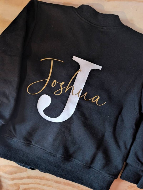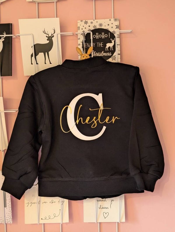 Het jasje wordt aan de voorzijde bedrukt met naam en voorletter, en in het groot op de achterkant van het jasje bedrukt. Super stoer!