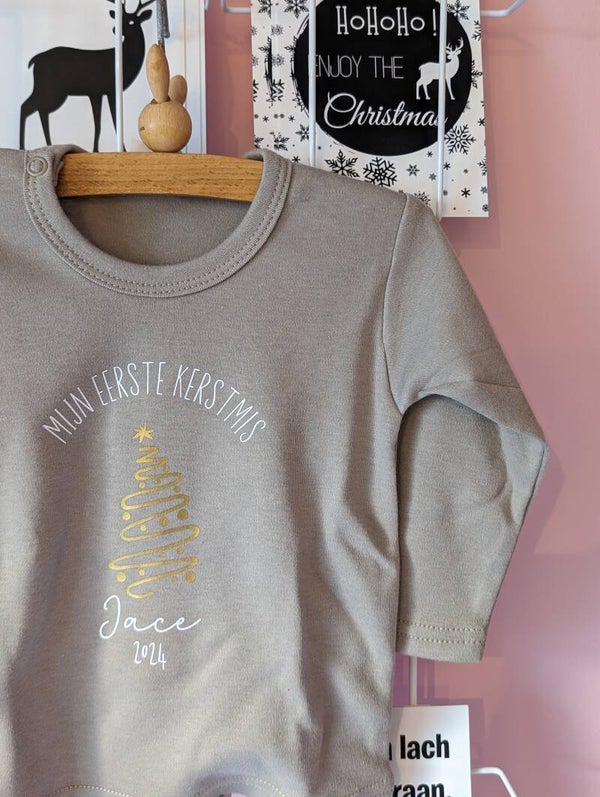 Laat jouw kleintje stralen in dit leuke gepersonaliseerde kerst shirtje met tekst; mijn eerste kerstmis. Gepersonaliseerd met naam en jaartal!